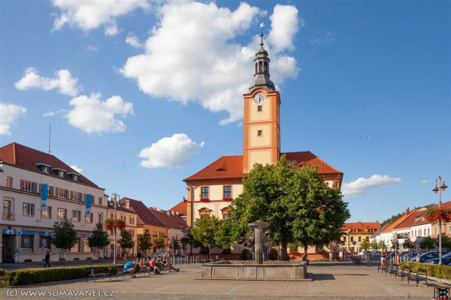 Kašna (uprostřed náměstí) - empírová kašna z pol. 18. st. Nádrž kašny je čtvercová, na rozích a uprostřed boků jsou motivy květů. Po kompletní rekonstrukci je od června 2005 opět funkční.