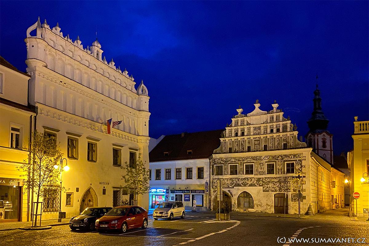 Voprchovský dům čp. 40 (dnes sídlo Muzea Šumavy) – základy domu pocházejí ze 14. st. Bývalé děkanství je dnes jednou z nejvzácnějších stavebních památek města a jedinečnou ukázkou gotického a renesančního stavitelství. I po renesační přestavbě zůstaly zachovány původní klenby, portál a štíty zadního traktu. Atypický renesanční štít získala budova v r. 1600 a je vysoký téměř jako vlastní stavba.