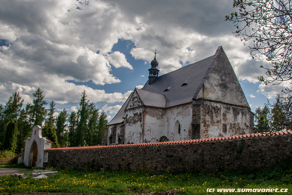 Kostel obklopený poli nedaleko Velhartic, založený v roce 1373. Počátkem 16. století byla přistavěna severovýchodní část a 19. století byl významně upraven (okna, nová klenba presbytáře, kruchta).