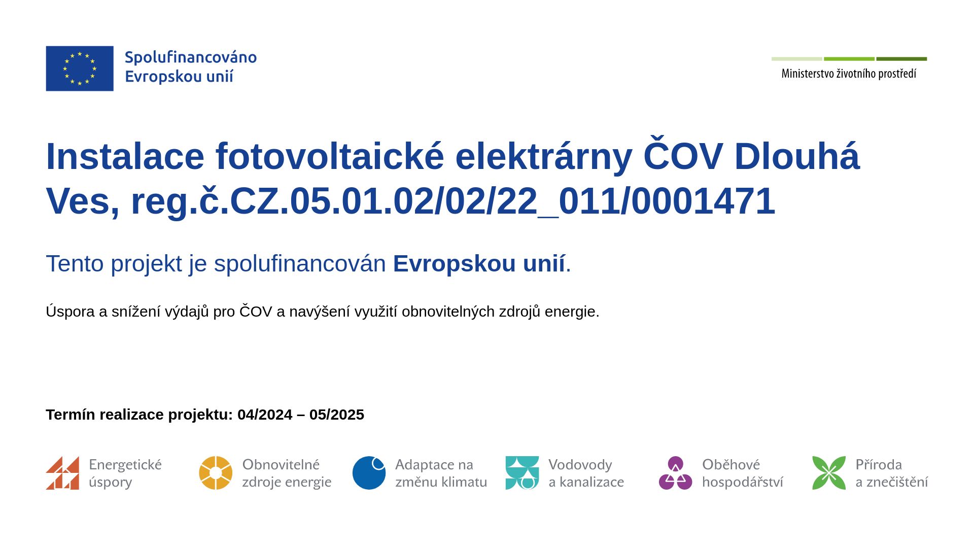 Obsah stránkyPublicita projektůDatumDokument23.10.2025Propojení jímacího zářezu a vodojemu v k.ú. Dlouhá Ves u Sušice11.06.2025Instalace fotovotlaické elektrárny ČOV Dlouhá Ves29.10.2024Projekt rekonstrukce a vybavení učeben ZŠ Dlouhá Ves23.10.2024Dechovkový festival v Dlouhé Vsi 202425.09.2024Rekonstrukce a vybavení učeben